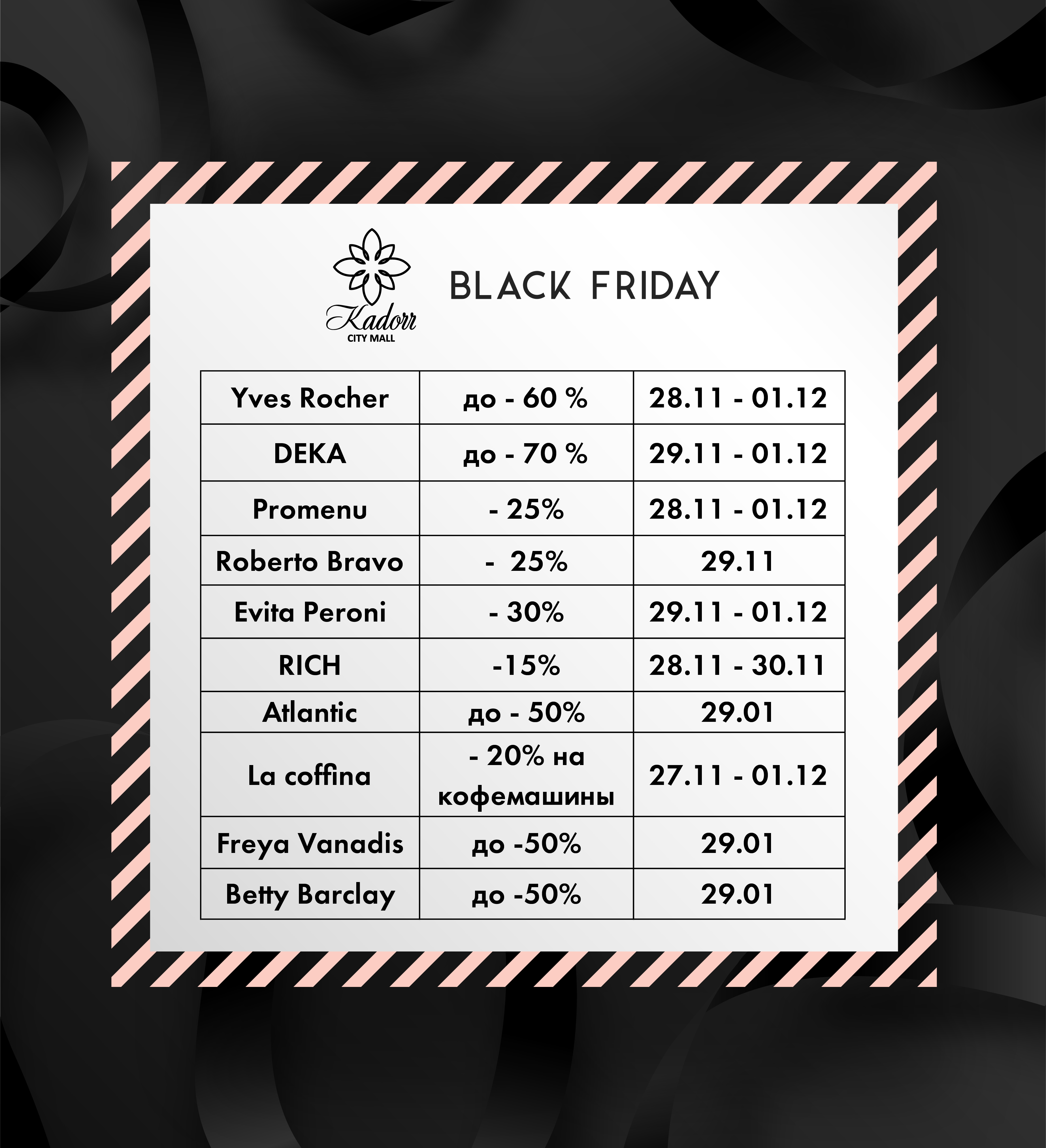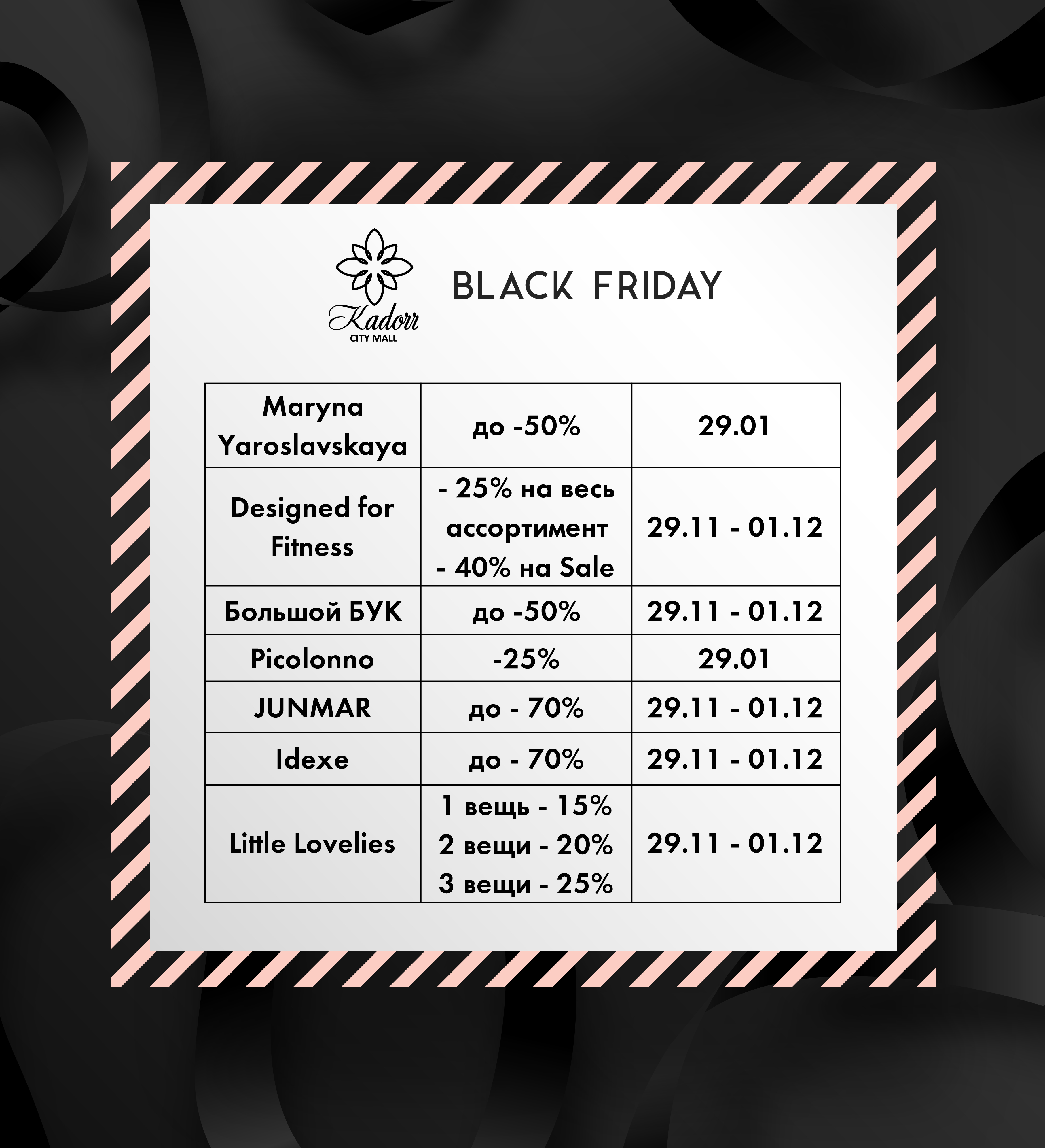 С 27.11 по 1.12 стартуют супер скидки до -70% в ваших любимых магазинах! Будет жарко, не пропусти 🥰